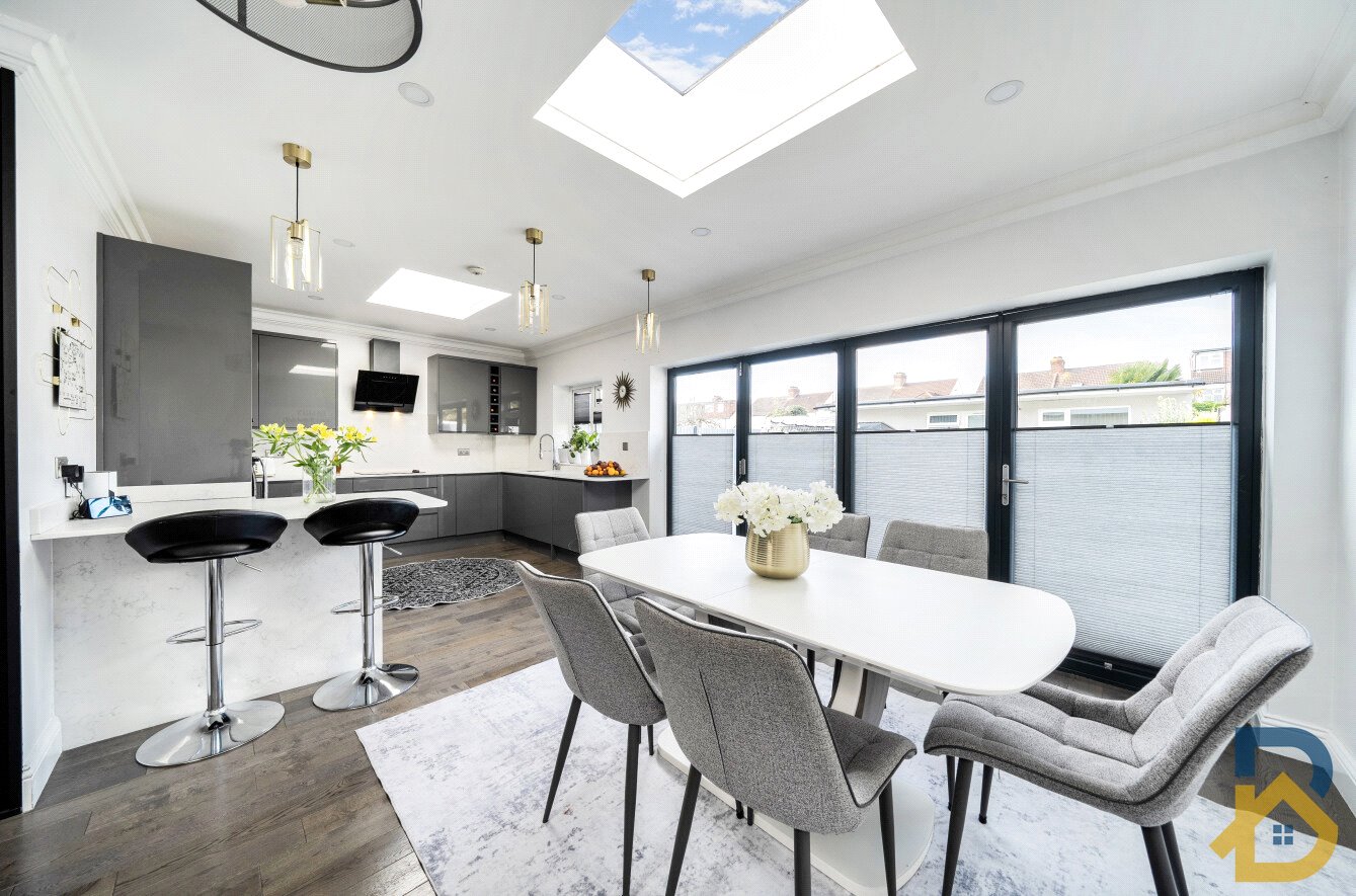 Viewings begin Saturday 8th December for this well-presented three-bedroom semi-detached bungalow on Alma Avenue, offering generous living space, a modern contemporary kitchen, a landscaped rear garden and an outbuilding.The property features an bright entrance hallway, spacious open plan living / kitchen / dining area with bi-folding doors opening onto the garden. The kitchen is fitted with contemporary units, Quartz worktops and integrated appliances, with window and skylights bringing in plenty ofnatural light.There are three bedrooms, including a main bedroom with extensive fitted wardrobes and en-suite shower room, along with a separate modern family bathroom.The rear garden is a key highlight neatly landscaped, with a wide patio area and artificial lawn area bordered by established planting. There is a detached outbuilding to rear. The front driveway provides parking for two vehicles.Alma Avenue is a quiet residential street within easy reach of local shops, restaurants and daily amenities on Station Lane. Hornchurch Station on the district line is around 0.3 miles away, providing services to London in approximately 38 minutes. Road links include the A127, A13 and M25.Nearby primary schools include Hacton Primary School (Ofsted rated: Outstanding) and Suttons Primary School (Ofsted rated: Good). Sanders Draper secondary school (Ofsted rated: Good)This is a well-located family home with great space, practical features and strong local transport connections.
