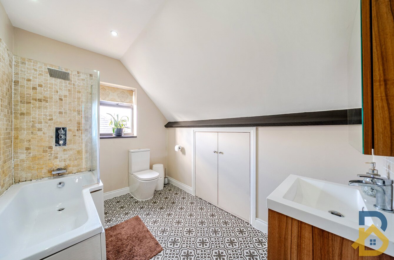 Upstairs, the property offers four well-proportioned bedrooms and a large family bathroom. The primary bedroom features twin windows and built-in storage, with all bedrooms offering comfortable space for families or those needing work-from-home options.