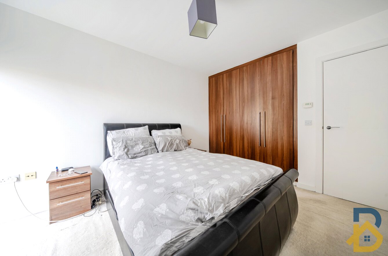 The spacious double bedroom comes complete with built-in wardrobes and provides easy access to a sleek, modern bathroom located off the hallway.