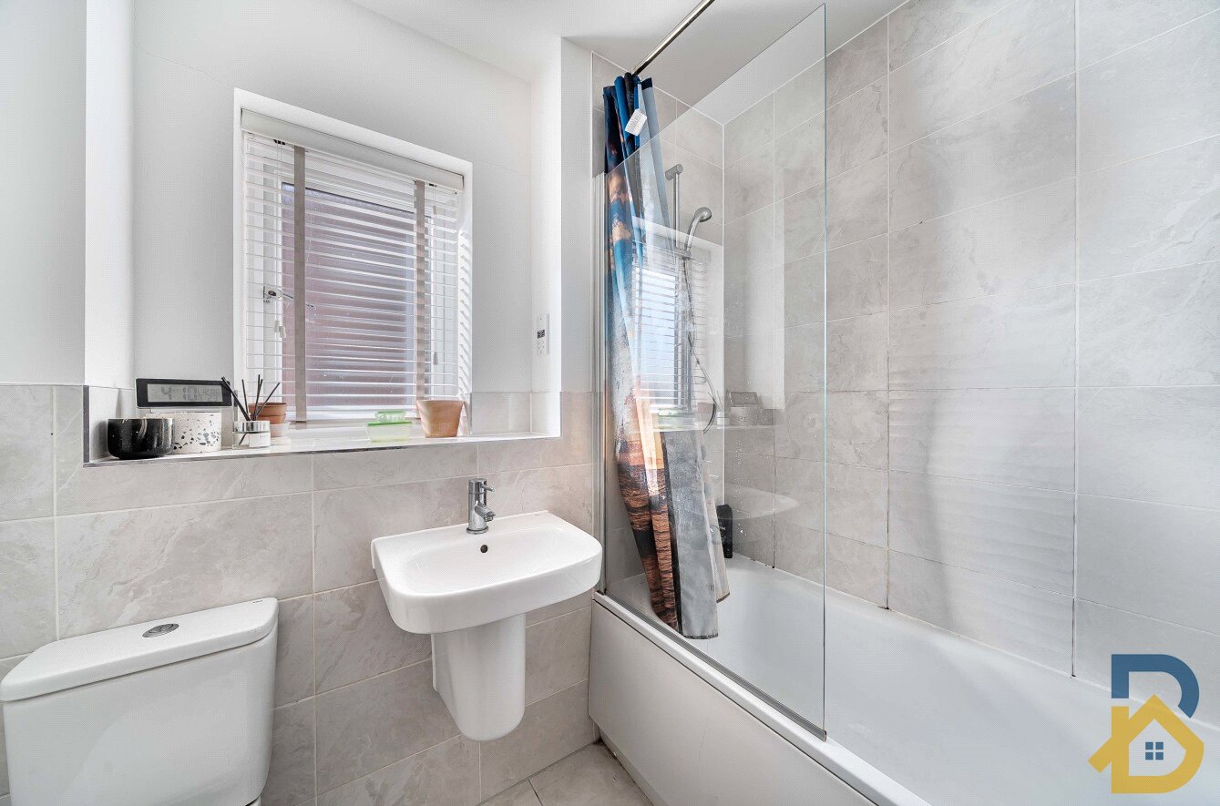 The ground floor features a bright and spacious lounge with double doors leading directly out to the rear garden, a contemporary fitted kitchen with integrated appliances, a convenient WC, understairs cupboard and covered entrance porch. Upstairs you’ll find three well-proportioned double bedrooms, a 3 piece en-suite to bedroom one, plus a family bathroom.